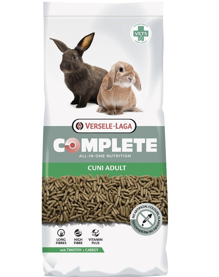 Versele-Laga Complete Cuni Adult neemt u alle zorgen uit handen. De bijzonder smakelijke all-in-one-pellets voorkomen een selectief eetgedrag. Zo krijgt uw konijn alle essentiële voedingsstoffen die het nodig heeft om kerngezond te blijven. De graanvrije voeding met lange vezels is speciaal afgestemd op de voedingsbehoefte van een volwassen konijn. Versele-Laga Complete Cuni Adult is ontwikkeld door dierenartsen, gebaseerd op de nieuwste wetenschappelijke inzichten.