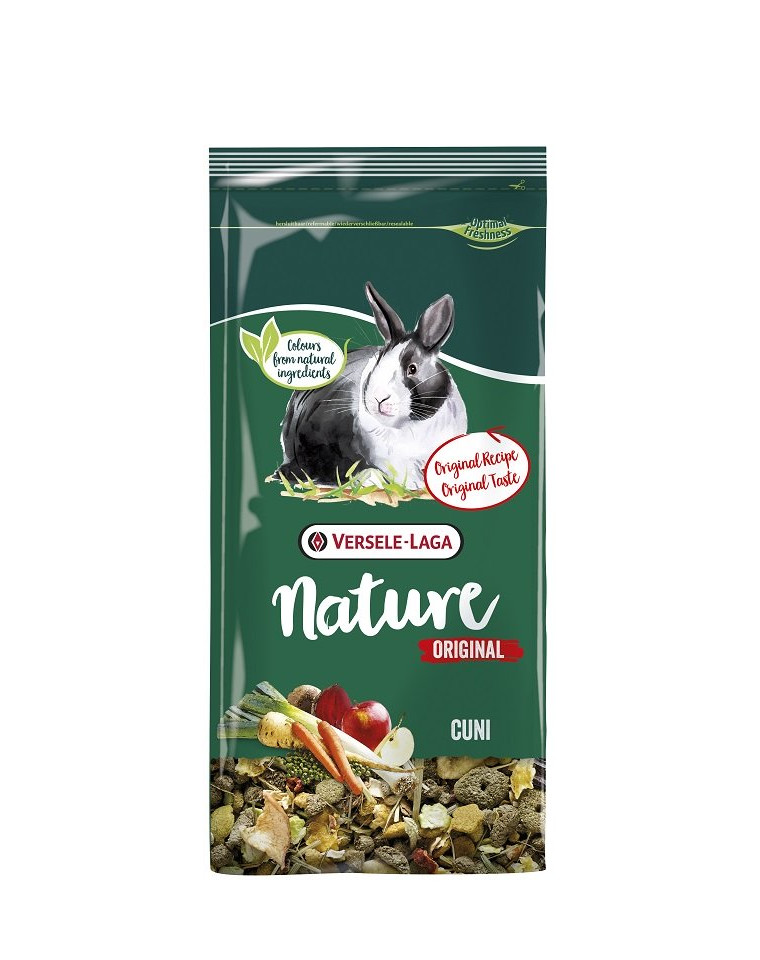 Nature Original Cuni ist ein vollwertiges Futter, das den Nahrungsbedürfnissen von ausgewachsenen (Zwerg-)Kaninchen angepasst wurde. Diese Premium-Mischung aus schmackhaften Zutaten enthält alle erforderlichen Nährstoffe, Vitamine und Mineralstoffe, die Ihr Haustier für ein unbeschwertes und aktives Leben benötigt. Die Fasern und Kräuter sowie die Gemüse- und Obststückchen in der Mischung sorgen für eine ausgezeichnete Verdauung, eine gute Zahnpflege, ein glänzendes Fell und beste Gesundheit. Die abwechslungsreiche Vielfalt der Zutaten garantiert eine hohe Schmackhaftigkeit und eine gute Akzeptanz. Nature Original ist daher die richtige Wahl, um Ihr Kaninchen jeden Tag zu verwöhnen!