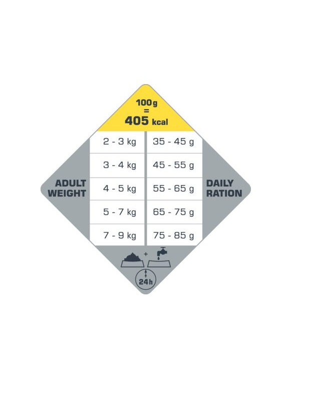 - Een unieke formule die volledig is afgestemd op de voedingsbehoeften van uw volwassen kat: een graanvrij, koolhydraatarm voer met eiwitten van 87% dierlijke oorsprong.