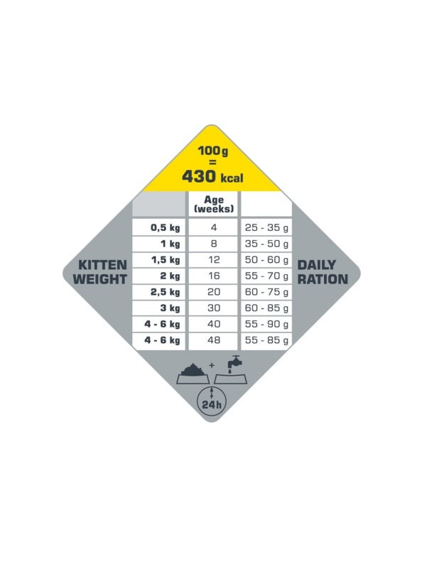 - Perfect voor zich ontwikkelende kittens, ter ondersteuning van de immuniteit (antioxidanten) en de normale darmfunctie (FOS en MOS).