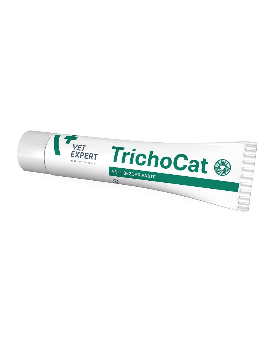 Voedingssupplement VetExpert TrichoCat Anti-bezoar Paste – 50g – aanvullend diervoeder voor katten ter bevordering van de uitscheiding van haarballen. TrichoCat Paste omhult individuele haren en aanwezige haarballen in de maag en ondersteunt zo de vermindering van haarballenvorming en het transport van aanwezige haarballen.