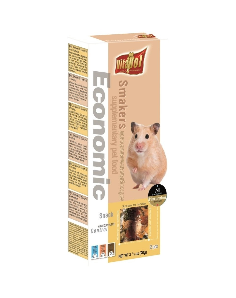 Smakers Economic voor hamsters is de ideale snack van gezonde, rijpe granen, smakelijke zonnebloempitten en wortelen vol vitamines en mineralen.