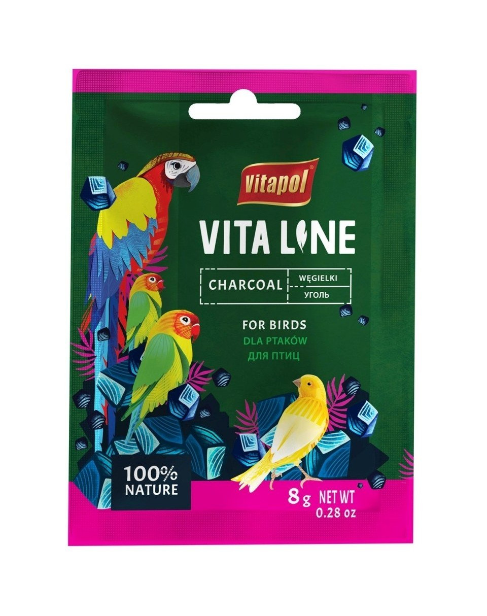 Natuurlijke koolstof met absorptie-eigenschappen voor veel gifstoffen. Onmisbaar bij vergiftigingen en diarree. Daarnaast reguleert het het spijsverteringssysteem van de vogels.