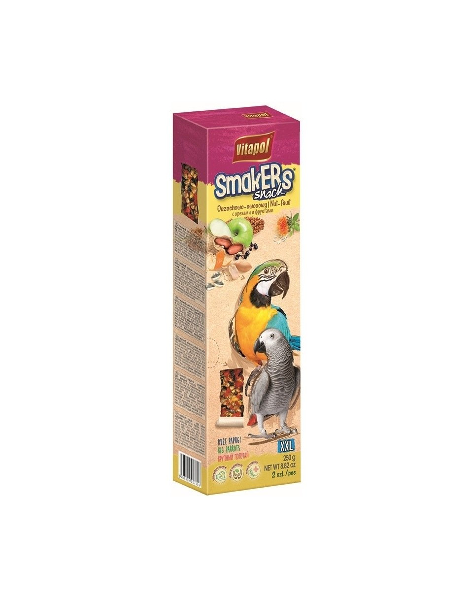 Smakers zijn rijk aan veel vitamines, mineralen en pectine uit rijp, hoogwaardig fruit zoals appel en vlierbes. Vlierbessen voorzien het lichaam naast vitamine C, pectine, tannines en mineralen ook van carotenoïden en jodium. Heerlijke noten aanvullen de voeding van papegaaien met vitamine E, dat een beschermende werking heeft op het zenuw- en immuunsysteem en een uitstekende antioxidant is. Bovendien zijn de noten een rijke bron van magnesium.
