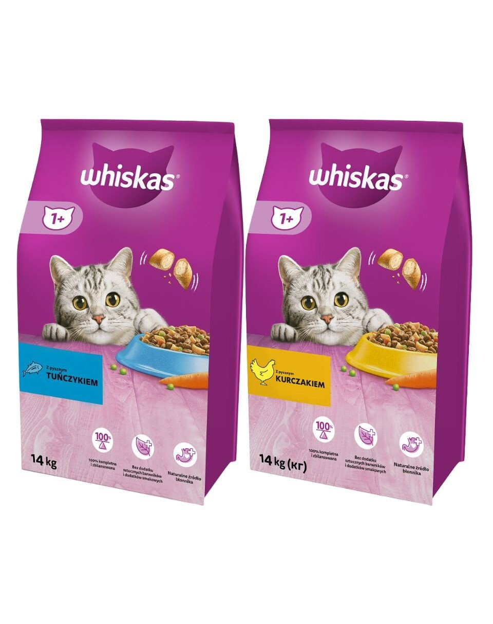 WHISKAS Droogvoer voor volwassen katten met Tonijn zijn complete maaltijden met een optimale samenstelling en een heerlijke smaak. De samenstelling is ontwikkeld door voedingswetenschappers en dierenartsen van het WALTHAM Animal Nutrition Centre en bevat alles wat de functie van uw kat op de belangrijkste gebieden ondersteunt. De toevoeging van vitamine A heeft een versterkende werking op de ogen, terwijl de aanwezigheid van omega-6-vetzuren en zink de gezondheid van huid en vacht bevordert. De optimale mineralenbalans van WHISKAS® helpt uw kat om haar urinewegen jarenlang gezond te houden. De speciale, licht schurende structuur van de brokjes vermindert de vorming van tandsteen en draagt bij aan de gezondheid van de tanden van uw kat.