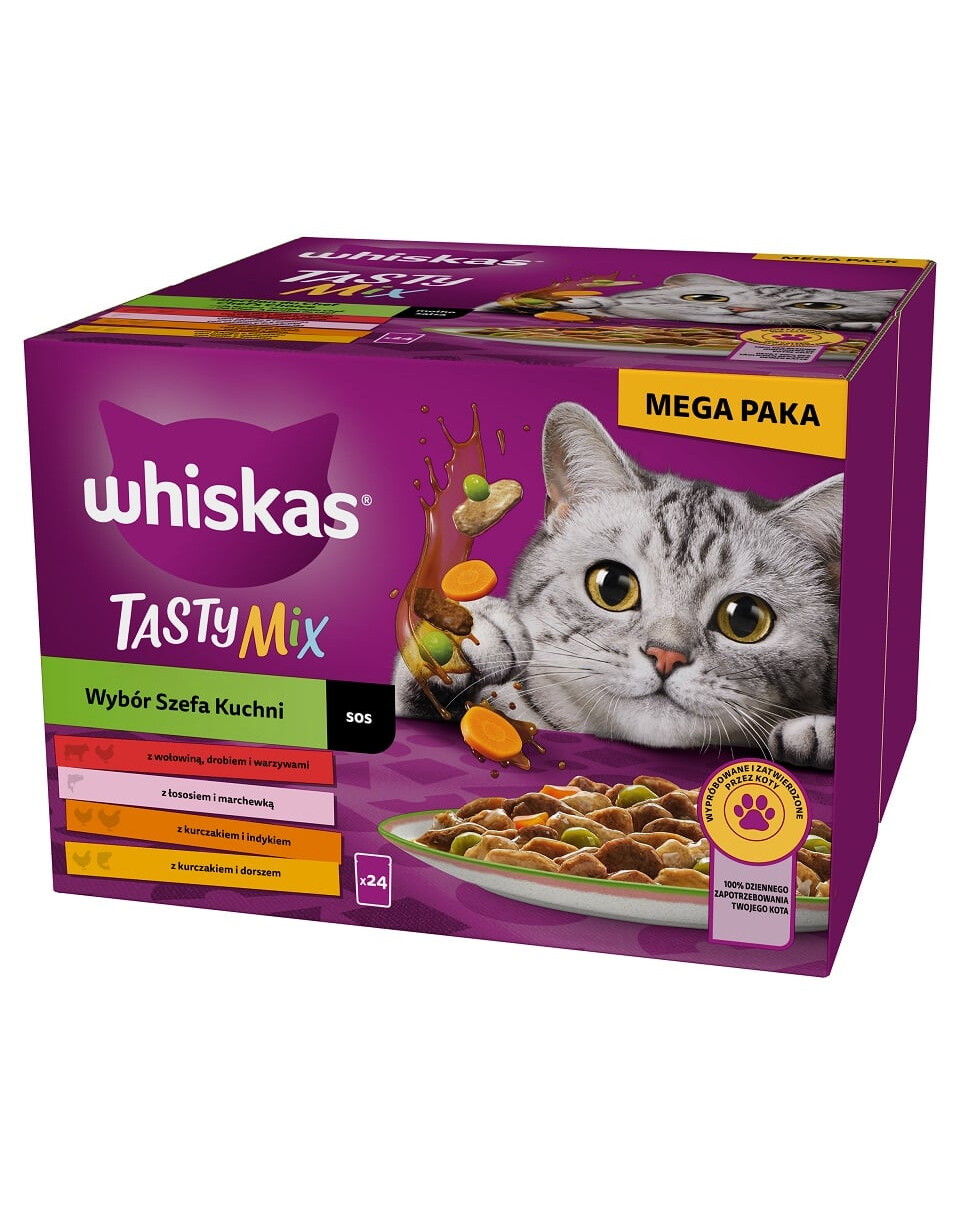 Nassfutter is een zorgvuldig bereid, compleet en uitgebalanceerd natvoer voor volwassen katten. Uw kattenvriend kan genieten van een van de vier smaken (gecombineerd met: rundvlees, gevogelte en groenten, zalm en wortel, kip en kalkoen, kip en kabeljauw).