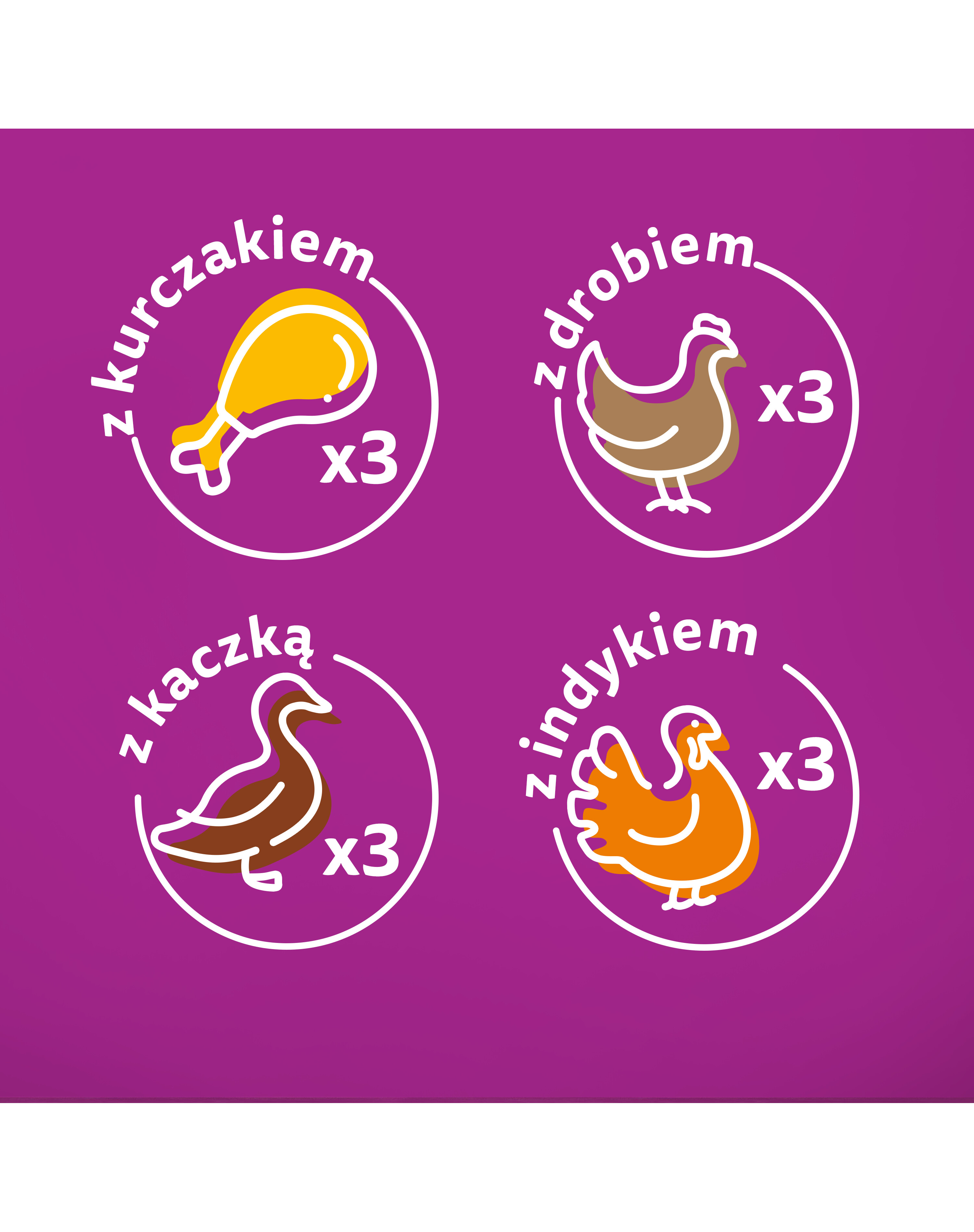 WHISKAS Pure Delight Drobiowe frykasy z kurczakiem, indykiem, drobiem, kaczką w galaretce 12x85g