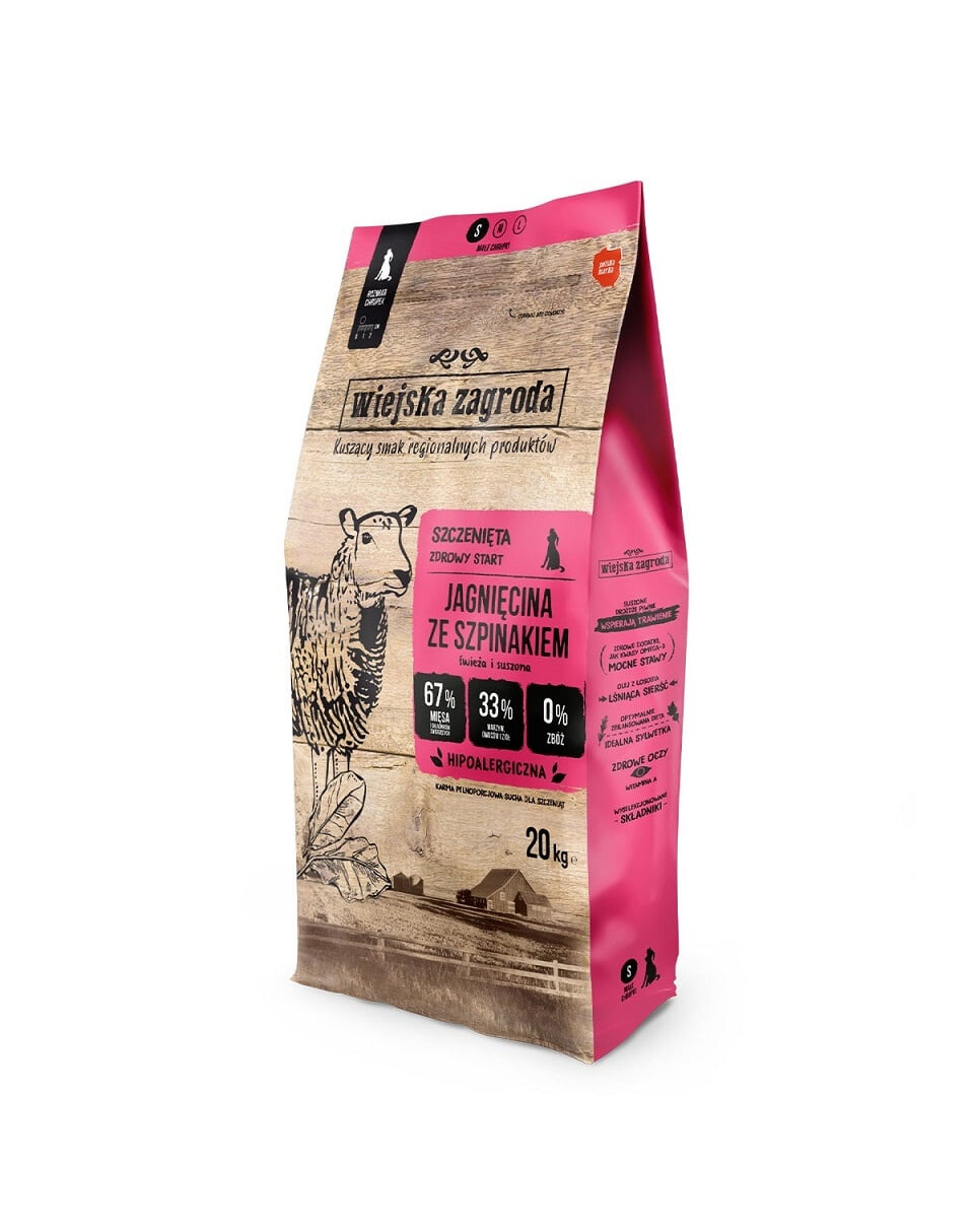 Lamsvlees is mals en gezond. Het kenmerkt zich door het gehalte aan linolzuur, dat kankerverwekkende processen remt. De toevoeging van mager kalkoen en eiwitrijk kip is het perfecte menu voor een jonge hond. Bovendien hebben we spinazie toegevoegd, dat rijk is aan vitamine C en magnesium, wat in de moeilijke puppytijd bijzonder belangrijk is, evenals foliumzuur, dat een waardevolle ondersteuning voor het zenuwstelsel biedt. Een gezonde start voor uw huisdier!